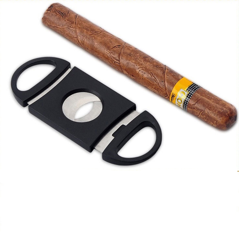 Hot Black Handmade Metal Laser Mini Portable Dual Blade Blade Abs Plastic Cigar Cutter