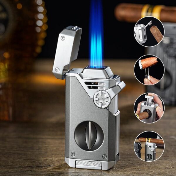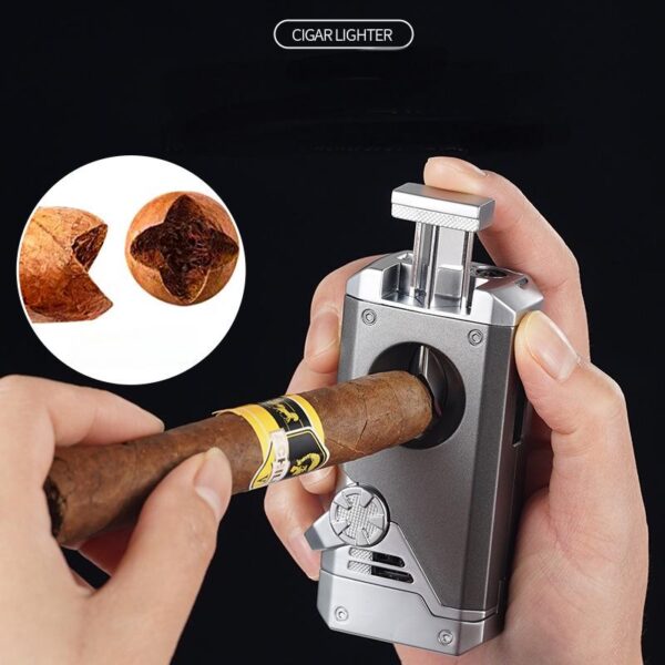 Built-in V Shape Knife Cigar Holder Jet Flame Butane Refillable Torch Lighter Smoker Gift Cigar Torch Lighter with Cutter