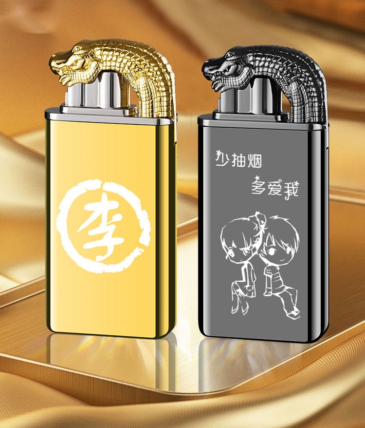 Creative crocodile Dial Double Fire Switching Lighter Metal Jet Flame Open Fire Cigarette Lighter Wholesale