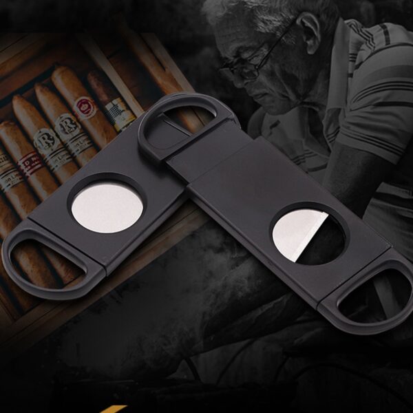Hot Black Handmade Metal Laser Mini Portable Dual Blade Blade Abs Plastic Cigar Cutter