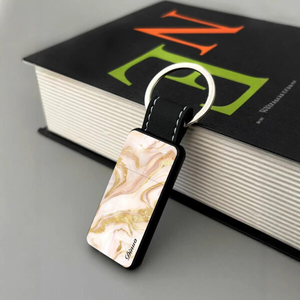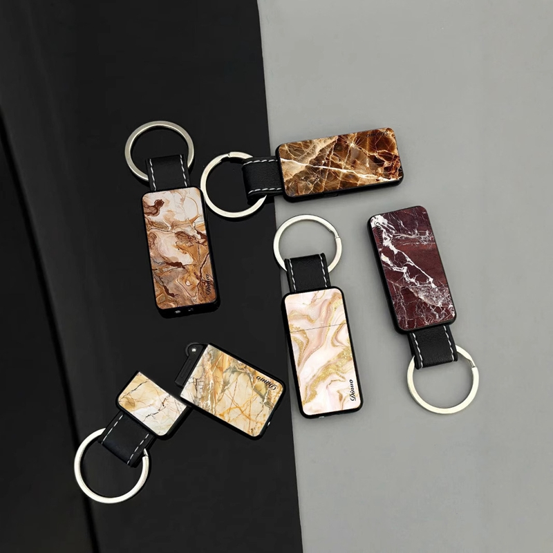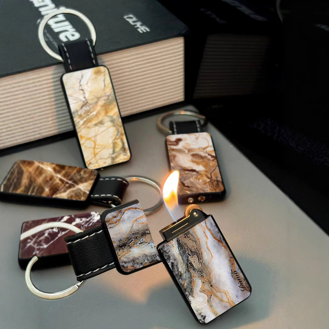 New Trendy Personalized Marble Pattern Inflatable Lighter with Keychain New Grinding Wheel Metal Fashionable Cigarette Lighter