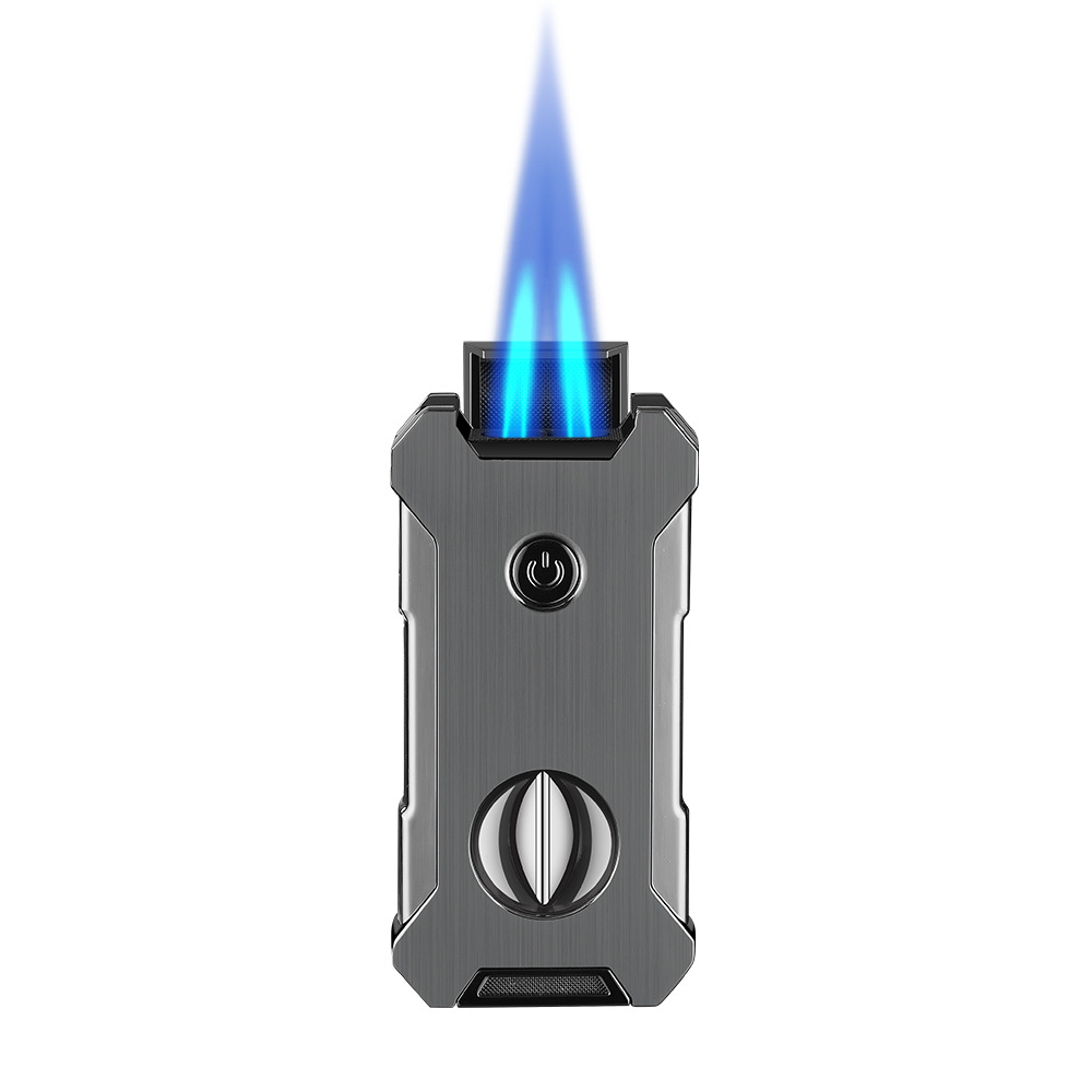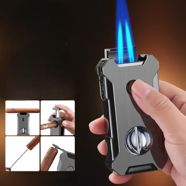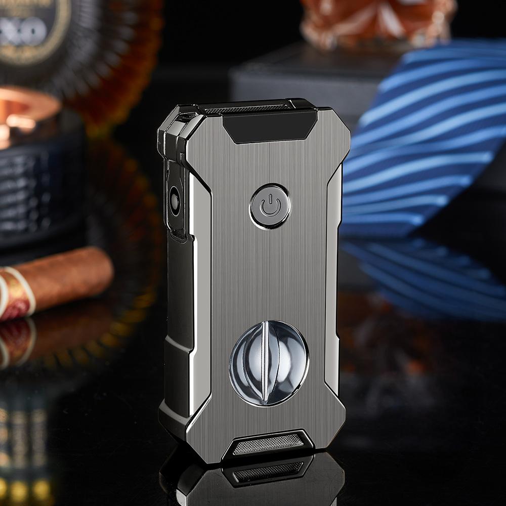 Wholesale Double Fire Jet Flame Cigar Lighter with V-shaped Cigar Cutter Portable Multi-functional Lighter